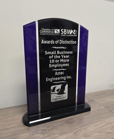 Aztec Engineering Inc. earned recognition as Small Business of the Year from the Grande Prairie Chamber of Commerce for our community focus and local impact.